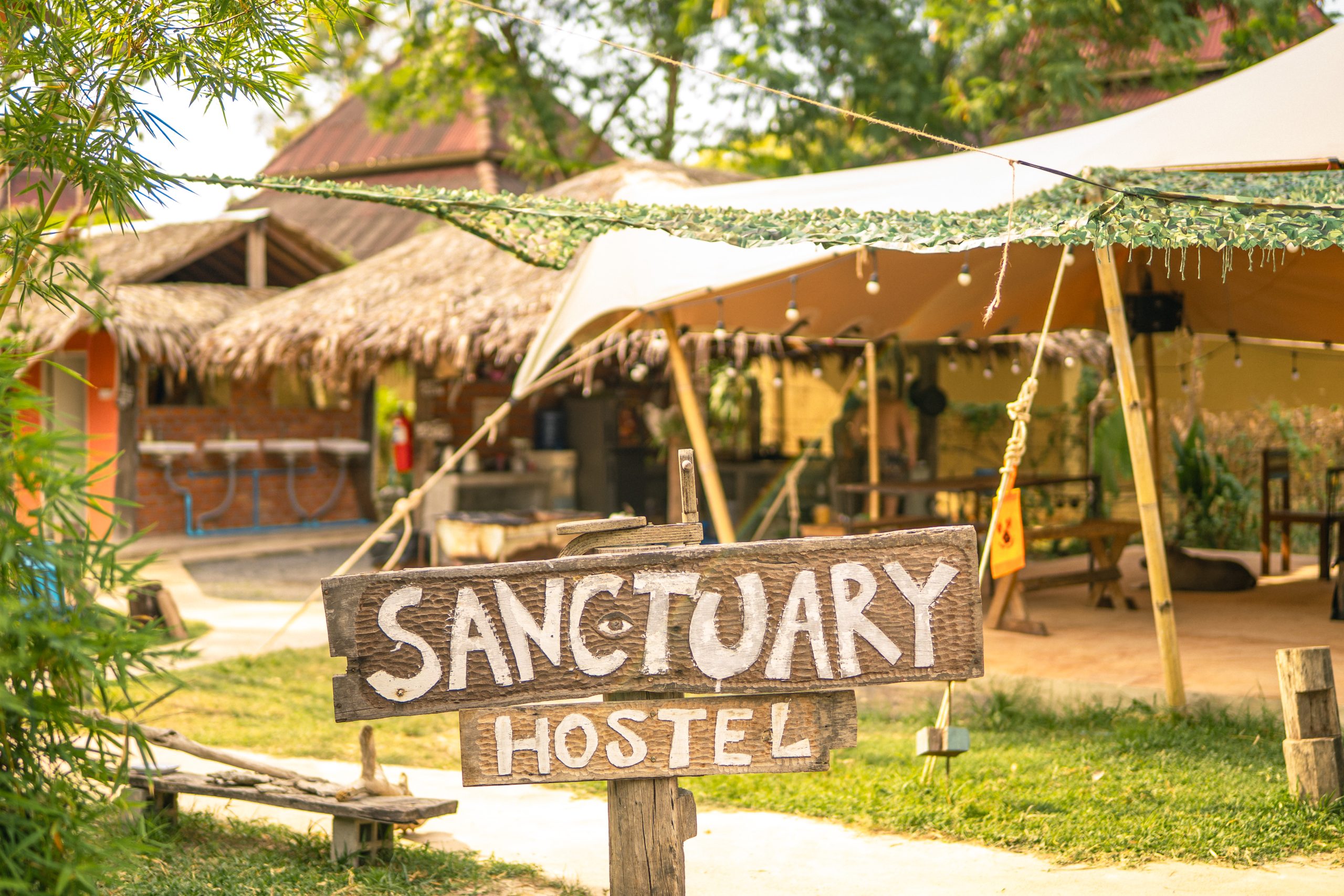 Two different ways to stay at Sanctuary - private bungalows for a quieter island escape, or our creative hostel for a more social and flexible stay.